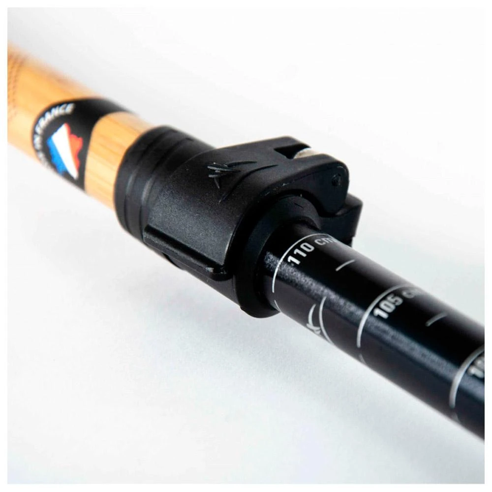 Le Guidetti Terre De Trek Evasion est un bâton de randonnée télescopique composé de trois brins en carbone et aluminium, avec un revêtement en bambou. Il est équipé d’un système de réglage à clapet externe en aluminium Easylock pour une adaptation facile à l’inclinaison du terrain. Il dispose également d’une poignée R-Go en liège agréable à la prise en main et de deux types de rondelles pour une utilisation polyvalente en été comme en hiver.