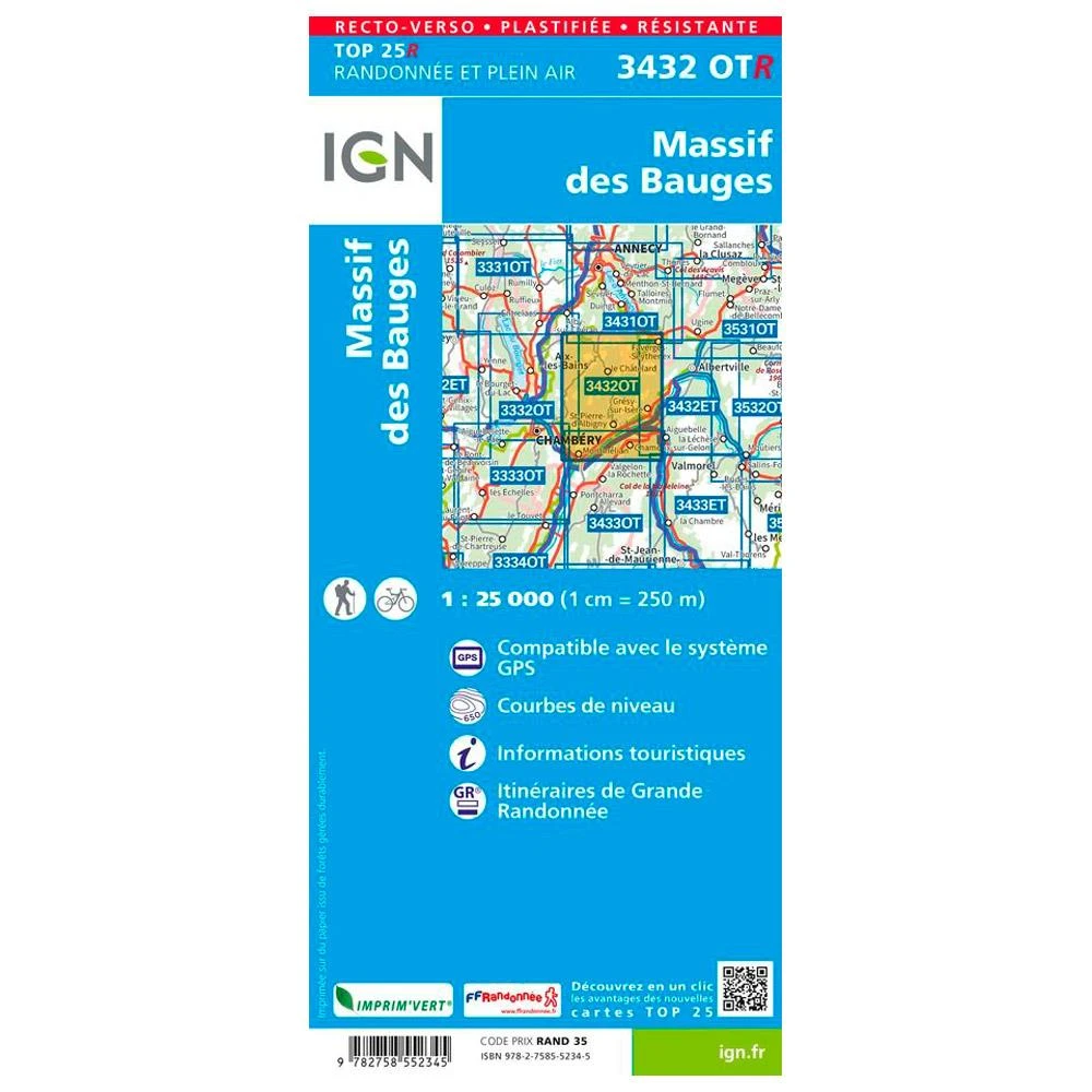 Caractéristiques de la IGN 3432OTR Massif des Bauges :