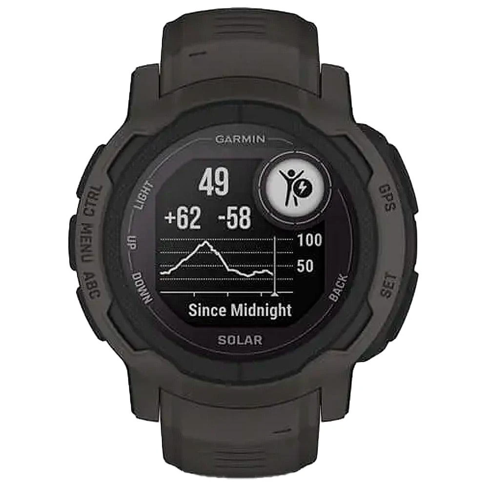 Conçue pour vous accompagner au quotidien et pendant de vos activités sportives, la montre GPS Garmin Instinct 2 Solar est un appareil connecté multifonctions. Il offre 28 jours d’autonomie (jusqu’à 65 jours en mode économie d’énergie) et dure 30h en mode GPS ou 70h en mode GPS batterie max. Un capteur solaire est également intégré pour rallonger la durée de la batterie. Pour des performances optimales, elle est compatible avec les systèmes de navigation par satellite GPS, Galileo et GLONASS. Ce modèle résiste aux rayures, à la chaleur et peut être immergé jusqu’à 100 mètres sous l’eau.